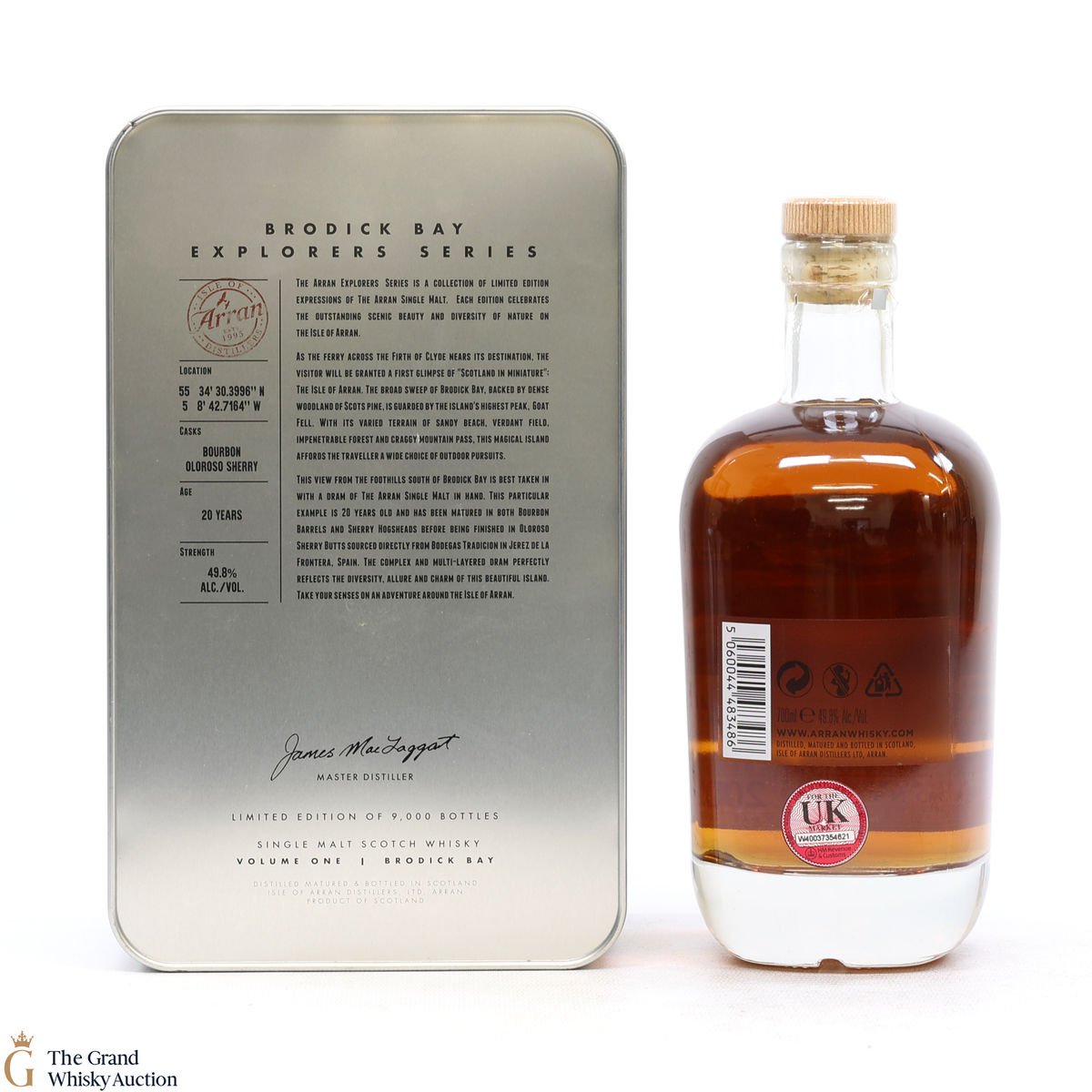 The presentation tin and the bottle label features a beautiful view from the foothills south of Brodick Bay. This is one of 9000 bottles.