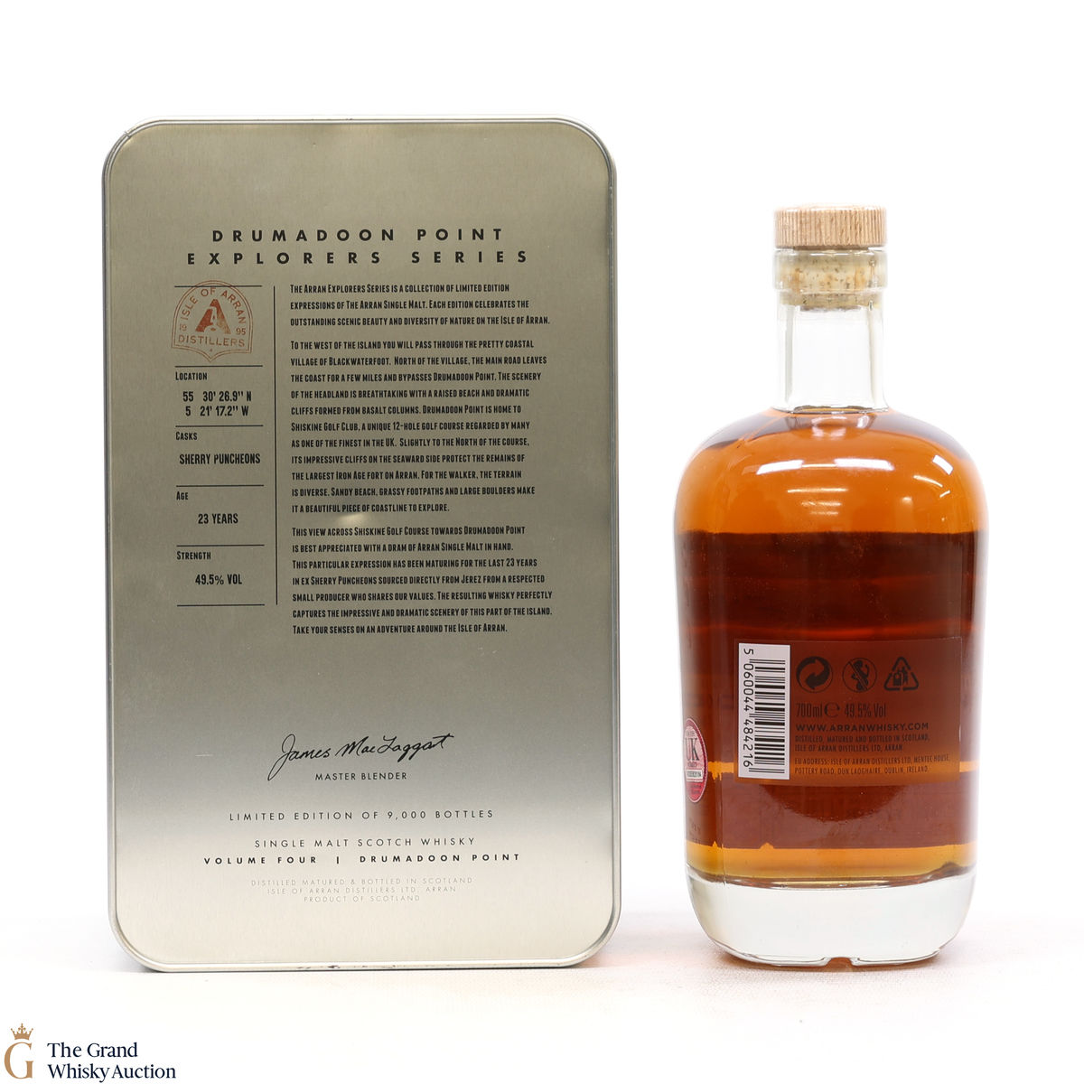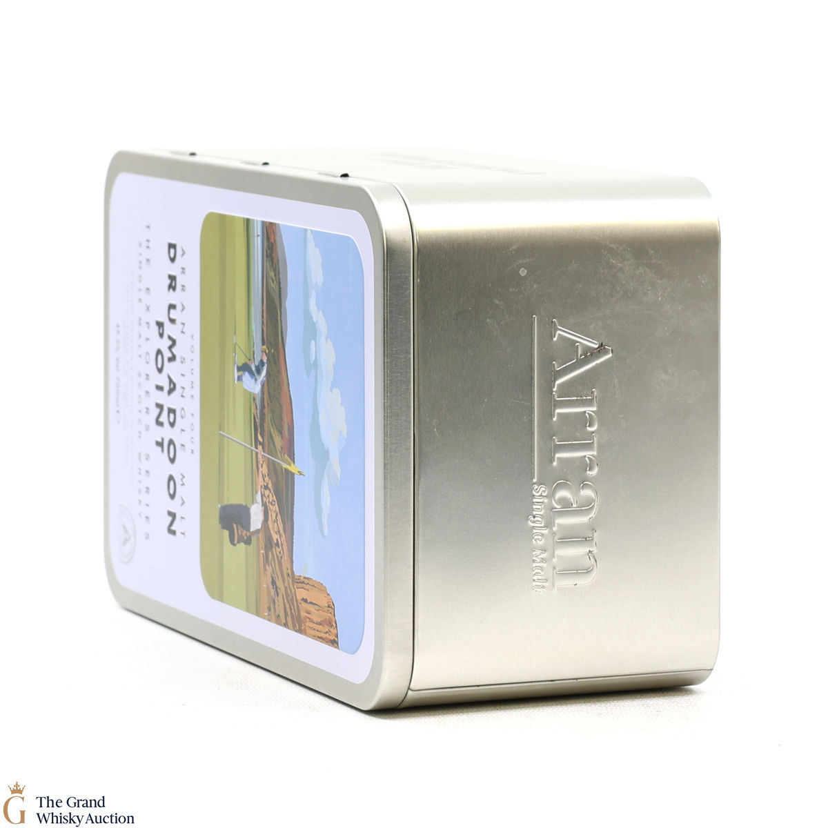 The presentation tin and the bottle label features beautiful views of Drumadoon point.
