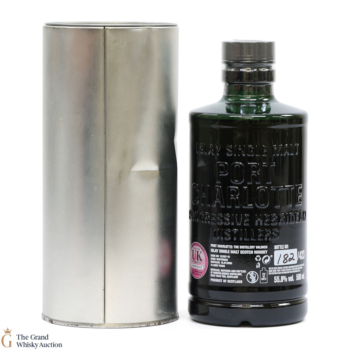 From Bruichladdich, one of the first Port Charlotte Valinch released after the 2018 rebranding. This single cask 14-year-old was distilled in Islay in 2003, and matured in Sauternes cask #13/267-10. This is a distillery-exclusive release of 423 bottles at 55.8% ABV. This is a 50cl bottling.