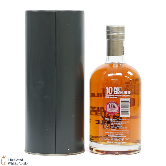The Port Charlotte 10-Year-Old whisky is produced in tall, narrow-necked spirit stills. This creates a lot of reflux and maximizes the amount of copper contact that the vapour receives. The result is a smooth, silky whisky, with noticeable floral elements. Following distillation, the new-make spirit is matured in a combination of first fill ex-bourbon casks (65%), second-fill bourbon casks (10%) and second fill French wine casks from Bordeaux (25%). The whisky is bottled on site. Neither chill filtering or caramel is used.