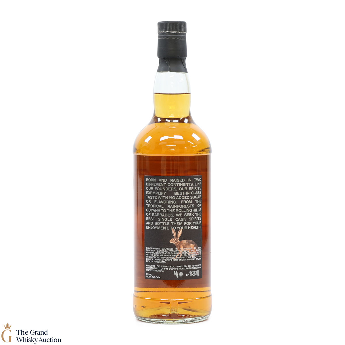 Due to the various ages of bottles and their seals, the condition of liquid is at the buyer's discretion and no claim can be lodged against failure/leakage in transit. Loss and breakage cover is available at 3% of the hammer price as standard. If the lot is not insured, no claim can be lodged against the courier or The Grand Whisky Auction for breakage or loss in transit.