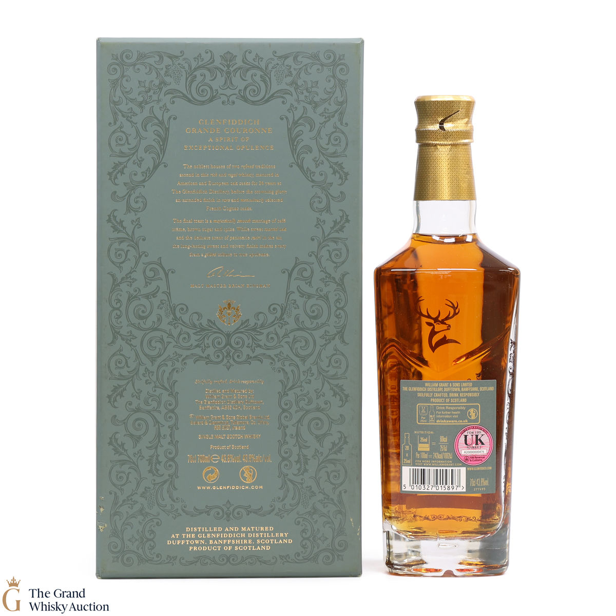 This 26 year old single malt is the highlight of the Glenfiddich Grand Series, whiskies which celebrate the merging of two worlds coming together. After maturing at the Glenfiddich Distillery, Grande Couronne has an extended two-year finish in rare French Cognac casks.