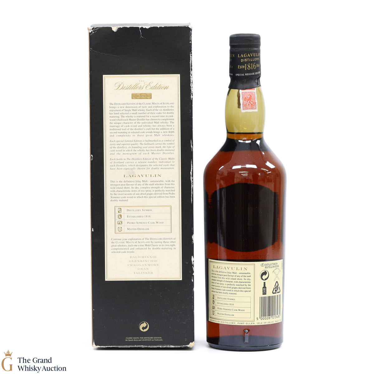 Lagavulin 1986 Distillers Edition was double-matured and was bottled in 2002 at 43% ABV. Lagavulin is the most sought-after bottling of the Distiller’s Edition range.