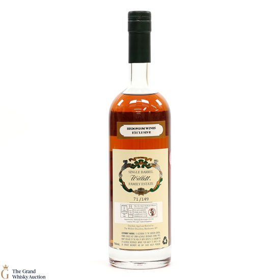 This is Willett's Family Estate bottled single barrel rye. Aged in hand-selected White Oak Barrels for 7 years. This particular bottle was hand bottled from barrel no #2111 exclusively for Hedonism Wines.