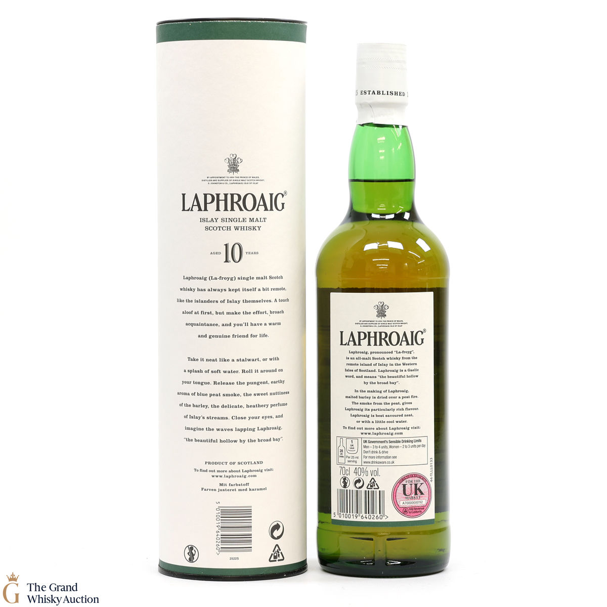 A 70cl of the medicinal 10 year old from Islay's bestselling distillery, Laphroaig. In making Laphroaig, malted barley is dried over a peat fire. The smoke from this peat, found only on Islay, gives Laphroaig its particularly rich flavour.