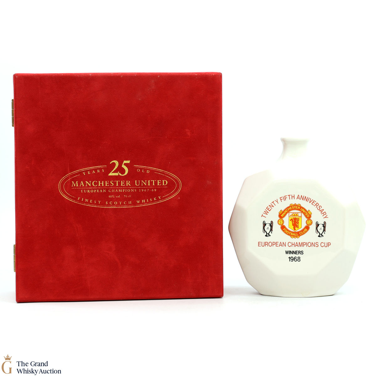 This rare blended whisky ceramic decanter marks the 25th anniversary of Manchester United winning the European Cup in 1968.