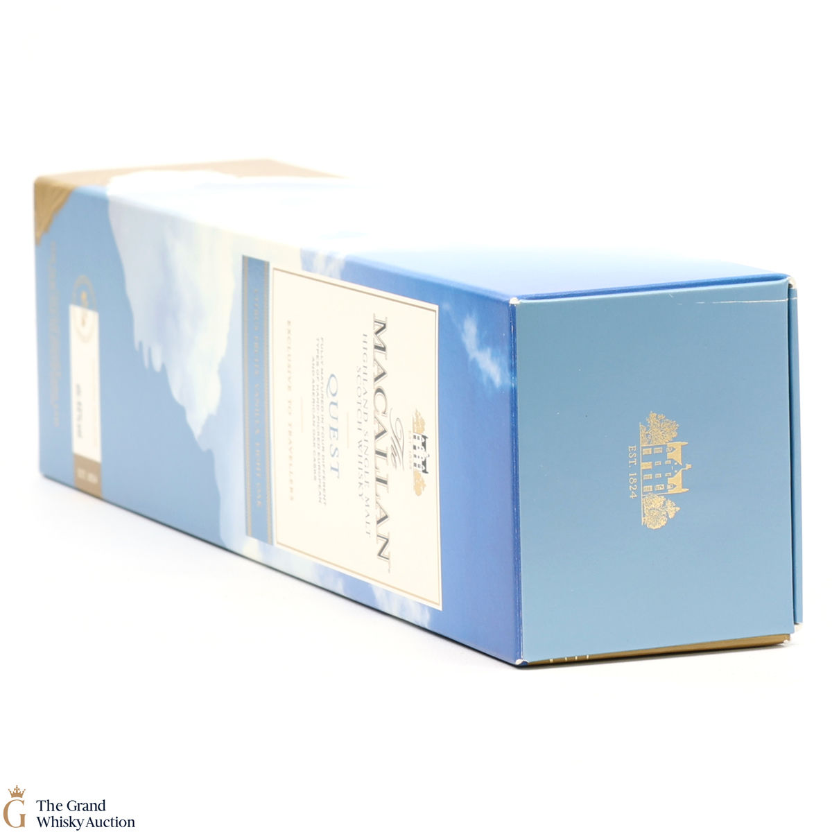 The Quest packaging has a blue sky which is said to symbolise 'the start of the journey where the world is a canvas and the sky is the limit' for Macallan.
