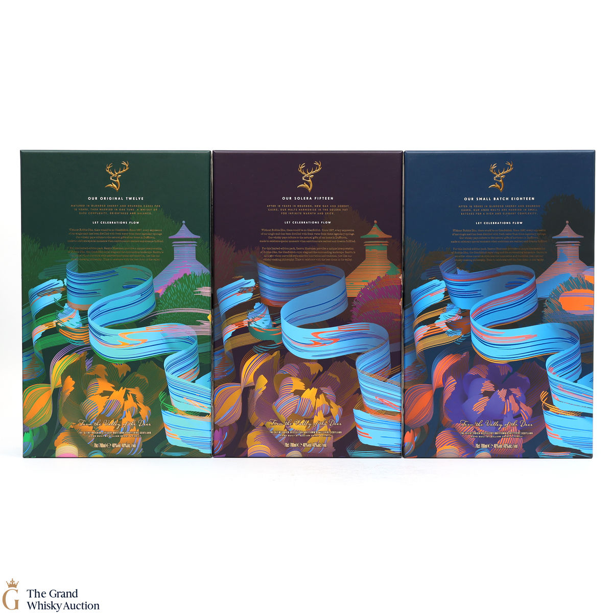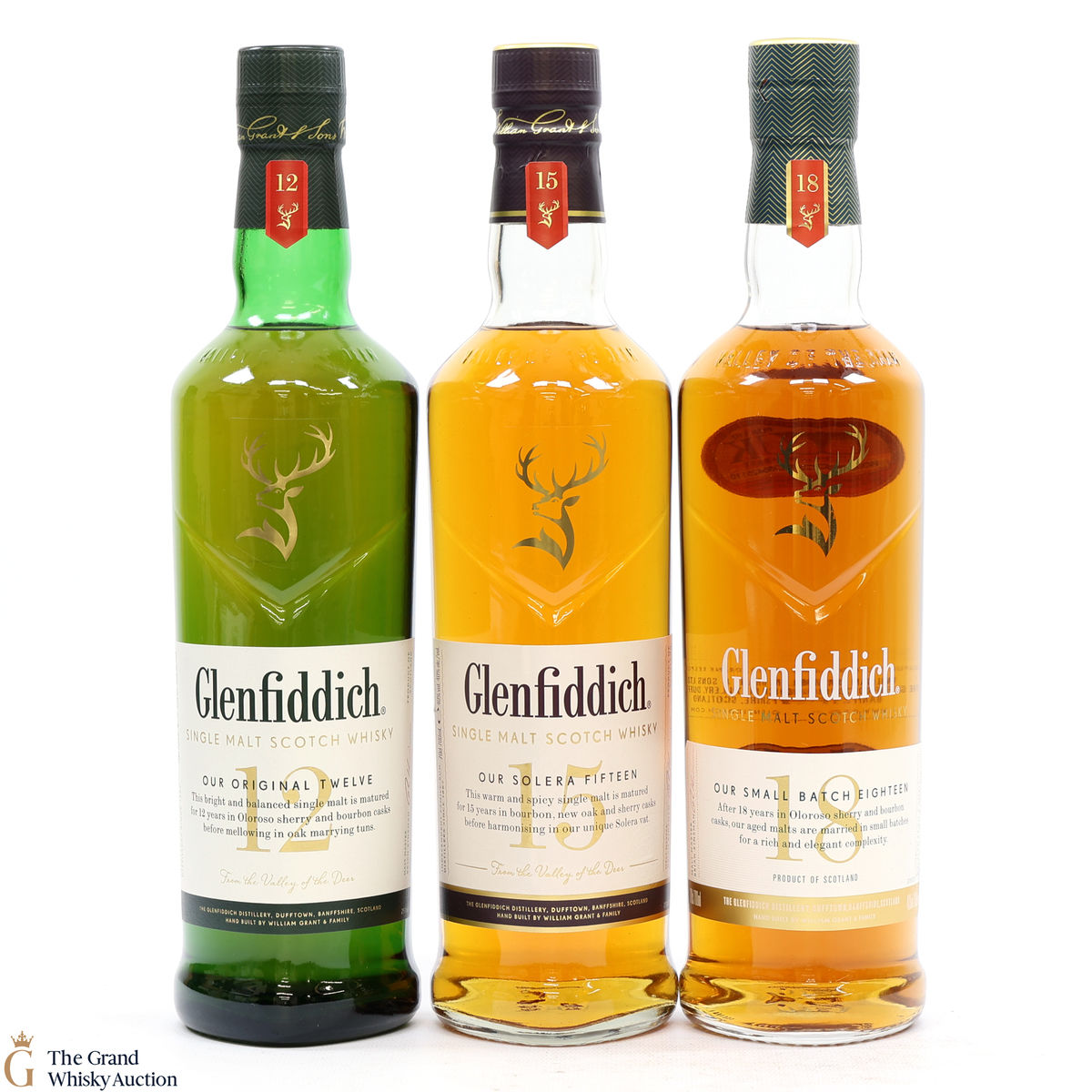 Glenfiddich - 12, 15 & 18 Year Old - Limited Edition Design (3x70cl & Hip Flasks)