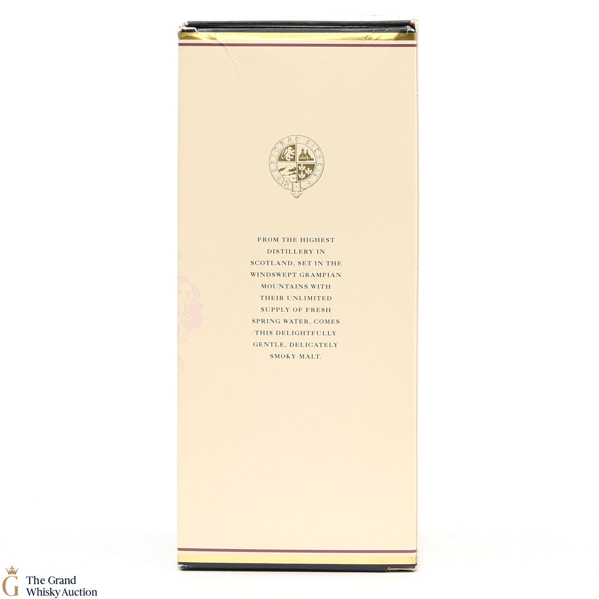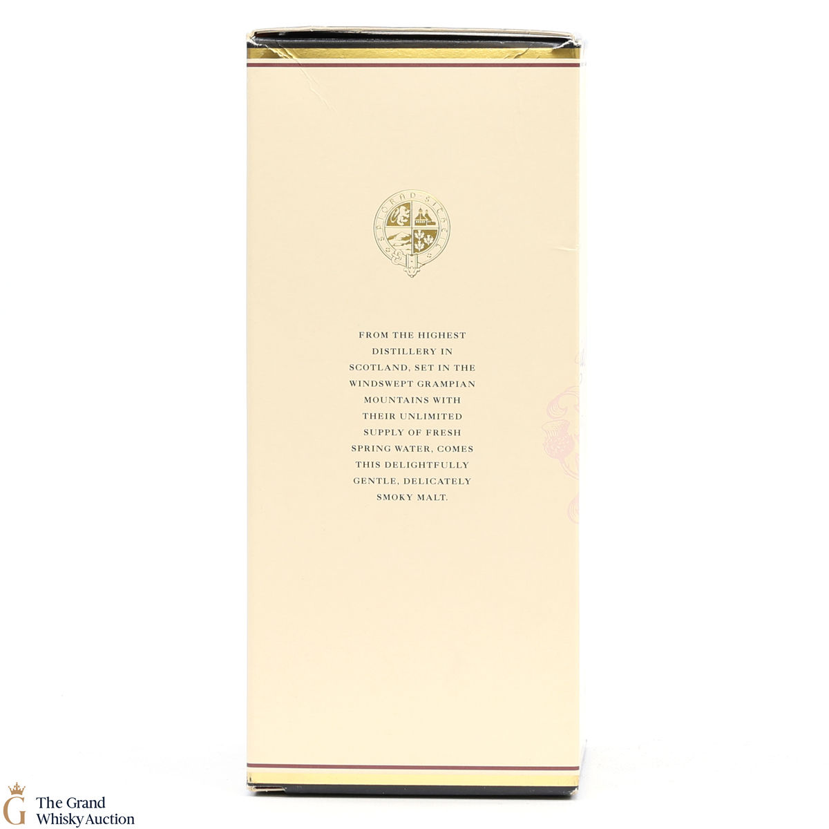 Due to the various ages of bottles and their seals, the condition of liquid is at the buyer's discretion and no claim can be lodged against failure/leakage in transit. Loss and breakage cover is available at 3% of the hammer price as standard. If the lot is not insured, no claim can be lodged against the courier or The Grand Whisky Auction for breakage or loss in transit.