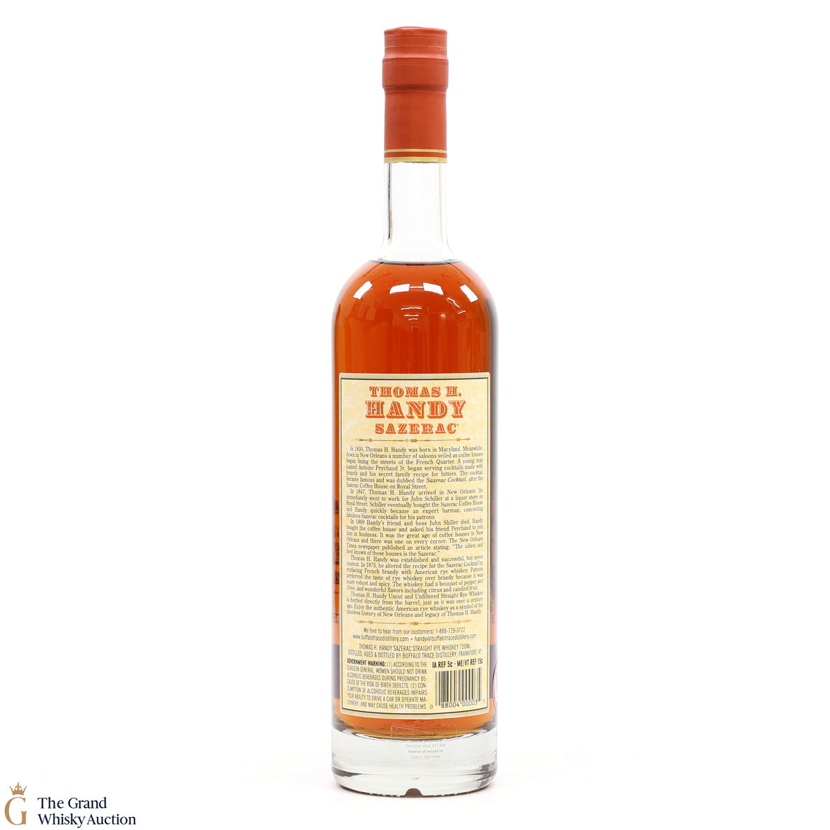 This collection is dubbed the antique collection and celebrates famous figures. The company's founder, Thomas H. Handy, is on the front of this bottle with the picture of the Sazerac Coffee House where everything started.