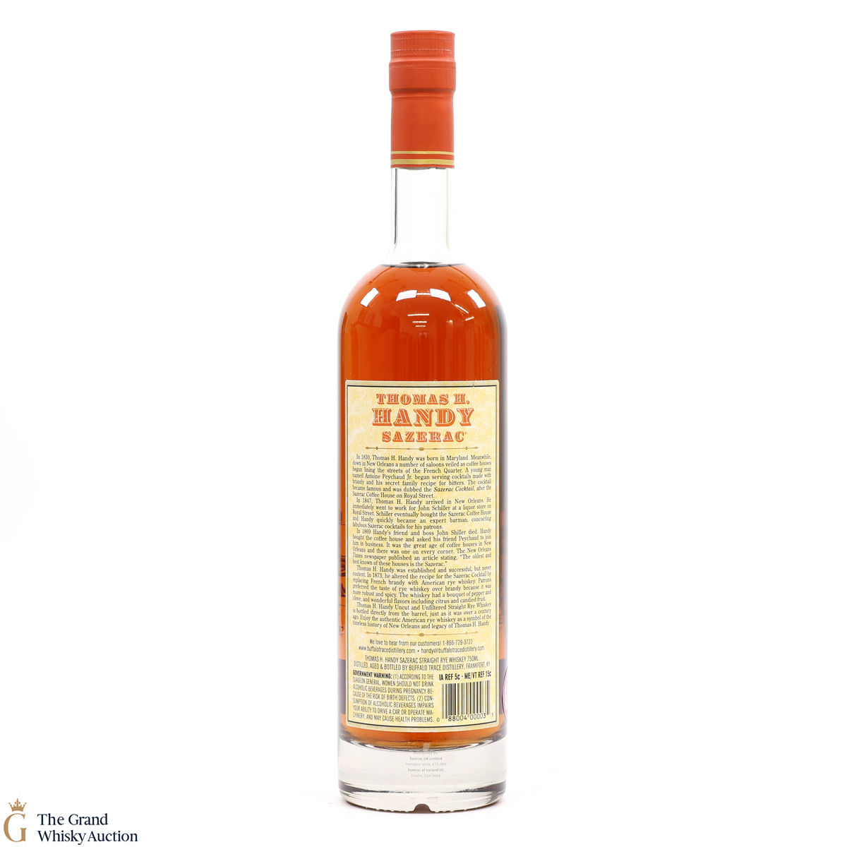 This collection is dubbed the antique collection and celebrates famous figures. The company's founder, Thomas H. Handy, is on the front of this bottle with the picture of the Sazerac Coffee House where everything started.
