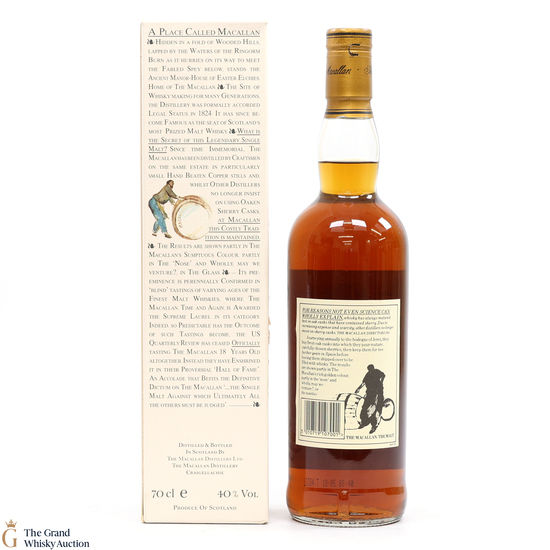 This single malt was distilled at the world-renowned distillery, Macallan, known for its sherry-seasoned cask finishes. It matured for a total of 10 years in sherry casks before being bottled in the 1990s.