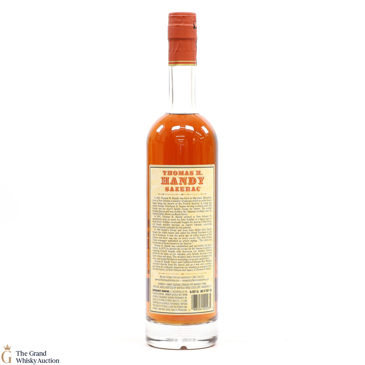 This collection is dubbed the antique collection and celebrates famous figures. The companies founder, Thomas H. Handy, is on the front of this bottle with the picture of the Sazerac Coffee House where everything started.