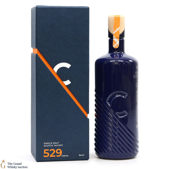 This single malt is from the Annandale Distillery. Deep in their bonded warehouse a compelling discovery was made – cask number 529 - unpeated single malt. This one-off whisky demanded a bottle to match. The single cask, single-malt Scotch whisky is enclosed within a ceramic bottle designed by CALLUM.