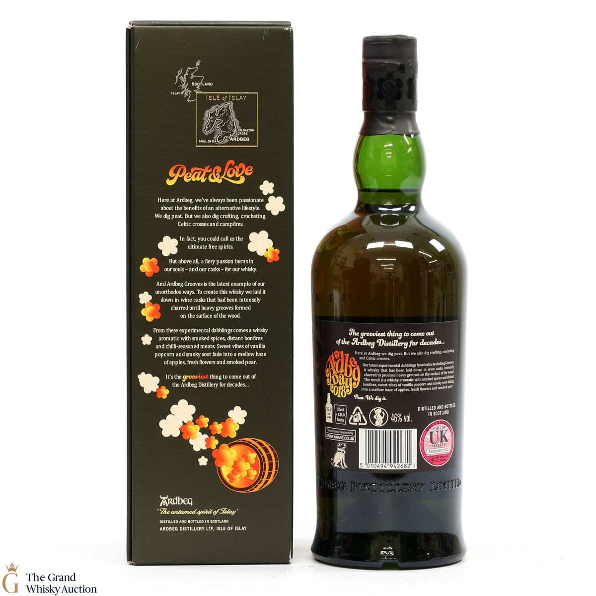 This limited edition Islay single malt was released to mark the 2018 Ardbeg Day at the Islay Festival of Music & Malt. The theme is a throwback to the Island's 1960s spirit, embodying the ideals of 'peat & love'! Ardbeg Grooves is crafted with ex-wine casks that are re-charred to create heavy grooves in the wood, allowing more interaction with the spirit and creating a richer flavour.