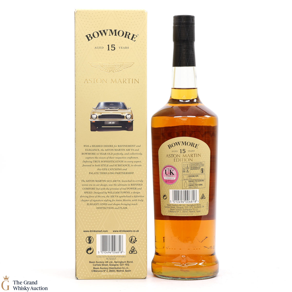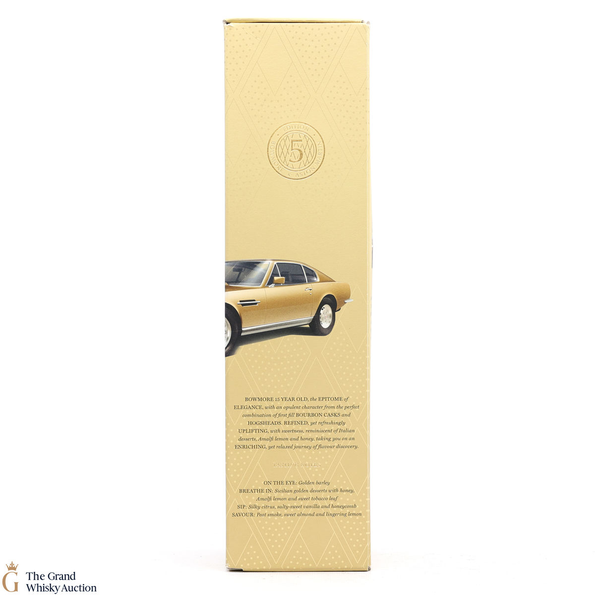 Edition 5 of the Bowmore x Aston Martin collaboration celebrates the iconic Aston Martin AM V8. Designed by William Towns, an elegant shape with ultimate comfort, power and speed, this 1972 motor was released in an iconic era of car design. A great pairing for the golden and elegant 15 Year Old, married in 1st fill bourbon casks to create a refreshing, silky peat-smoked character with notes of citrus.