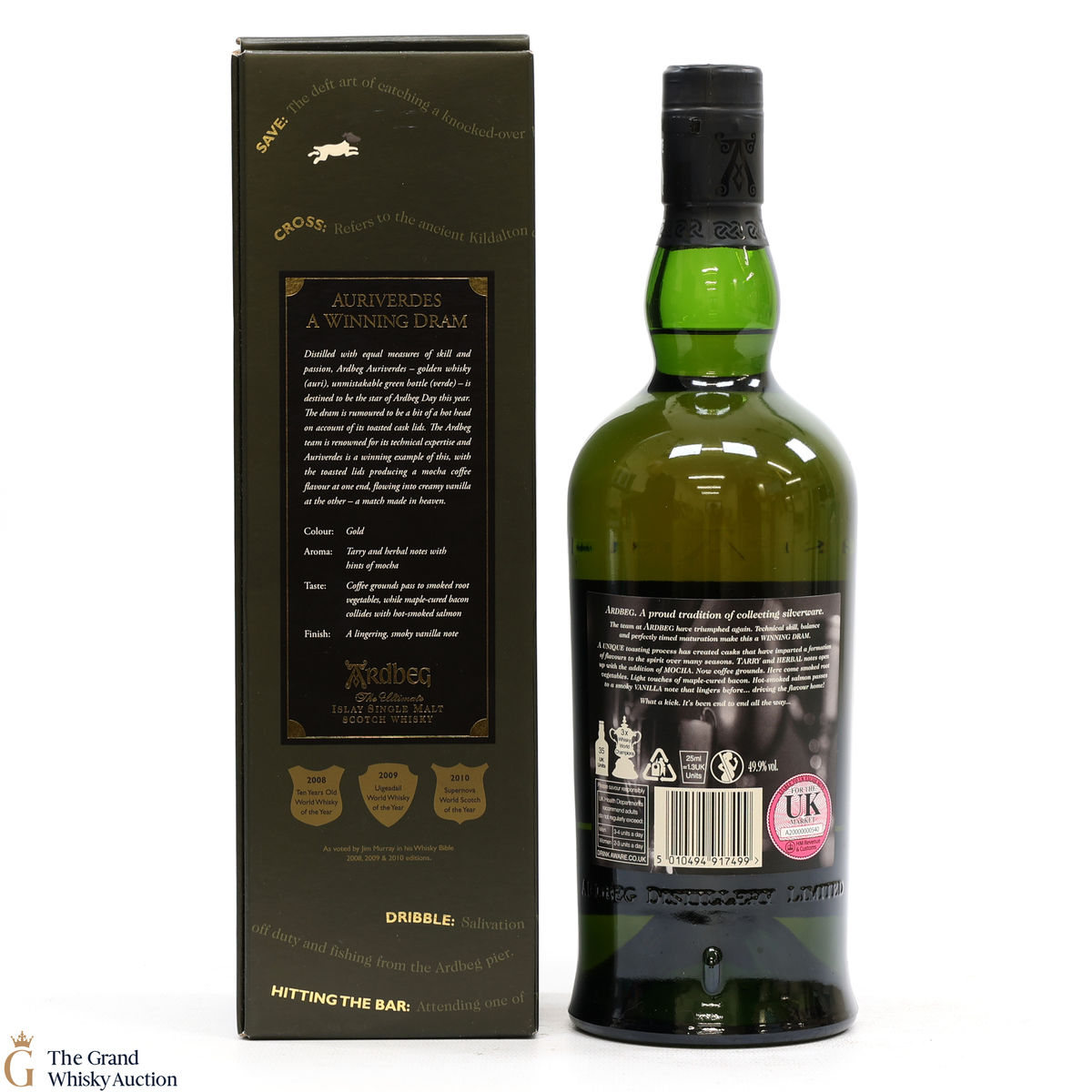 This special edition Ardbeg single malt was released on Ardbeg Day 2014 during Feis Ile. Auri(Gold) Verdes (Green) it refers to the golden whisky and the iconic Ardbeg green bottle of Ardbeg whisky. It is said to be a dram of two halves - the whisky uses toasted cask lids to create Mocha Coffee flavours that team up with creamy vanilla.