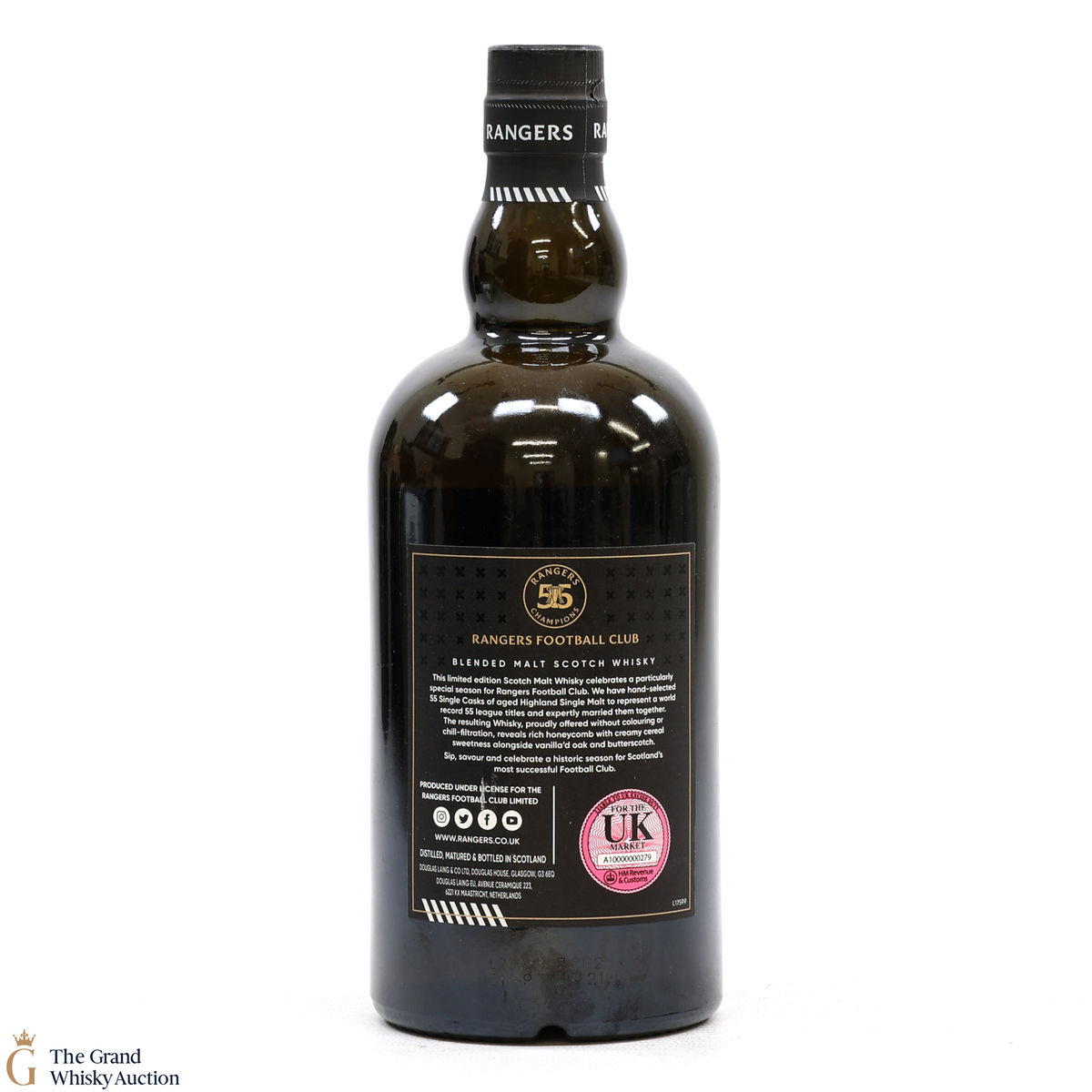 Glasgow-based Douglas Laing created the special release dubbed Rangers Champions 55. The blended malt is created from 55 Single Casks of aged Highland Single Malt to represent a world record 55 league titles and expertly married them together.