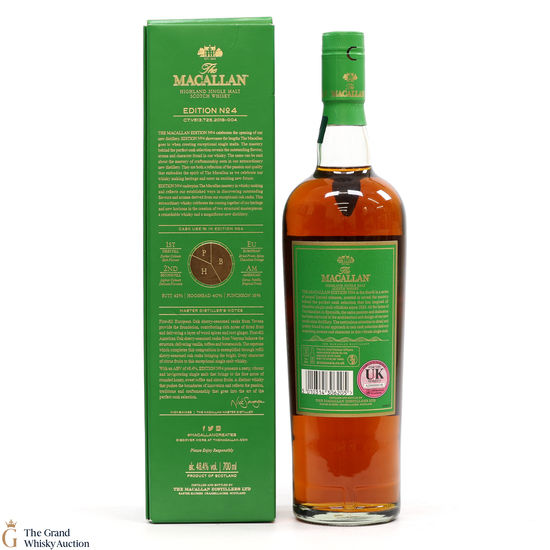 The fourth release in the Edition Series from The Macallan, this Speyside single malt is a celebration of the distillery's whisky making heritage, combining a unique selection of oak cask styles. Edition No.4 reflects the craftsmanship and pioneering design of the new Macallan distillery.