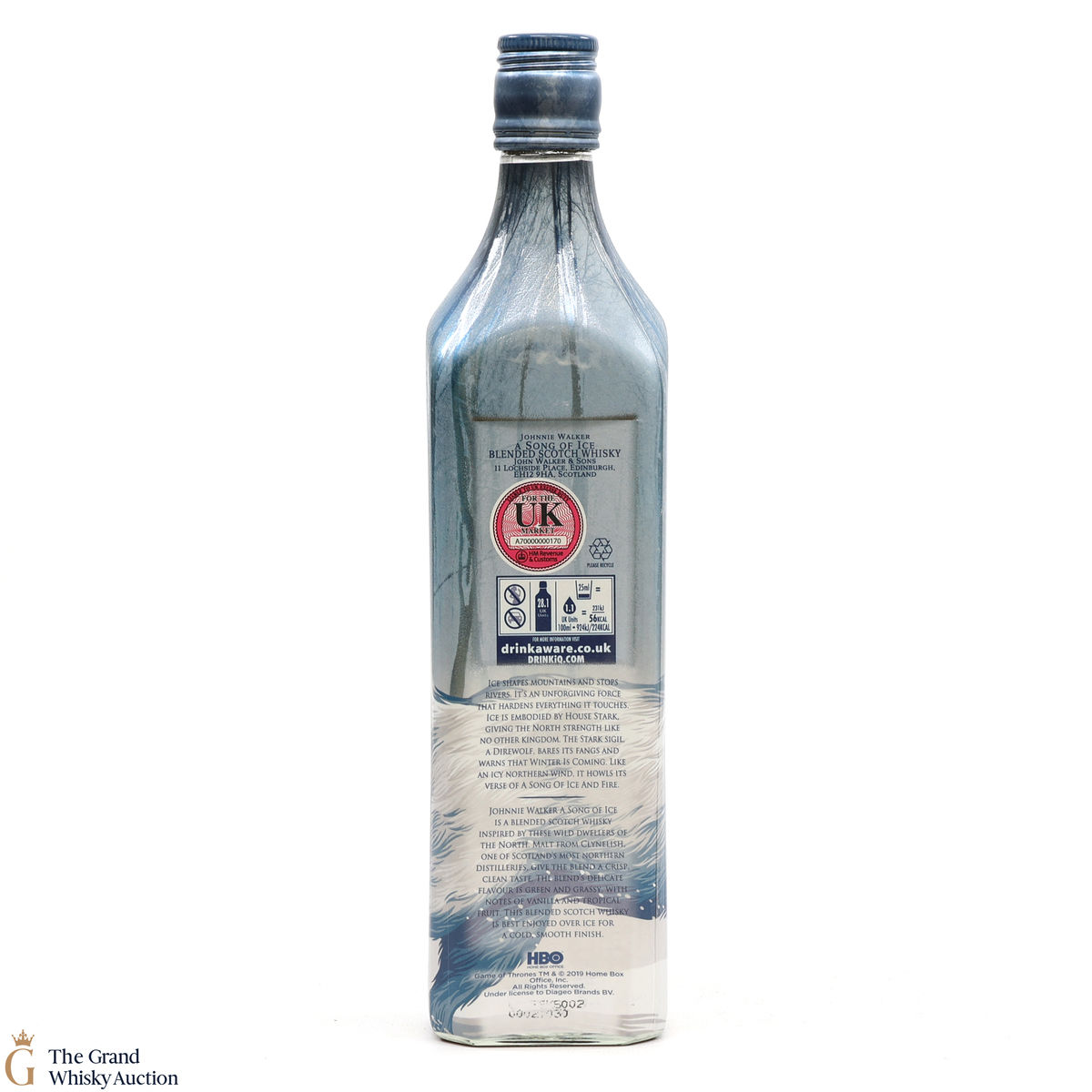 A Song of Ice is a blended Scotch inspired by the Direwolves used as the sigil for the House of Stark. With a good proportion of malt from Clynelish, a northern Scotland distillery and a wintery bottle design it warns that 'winter is coming'