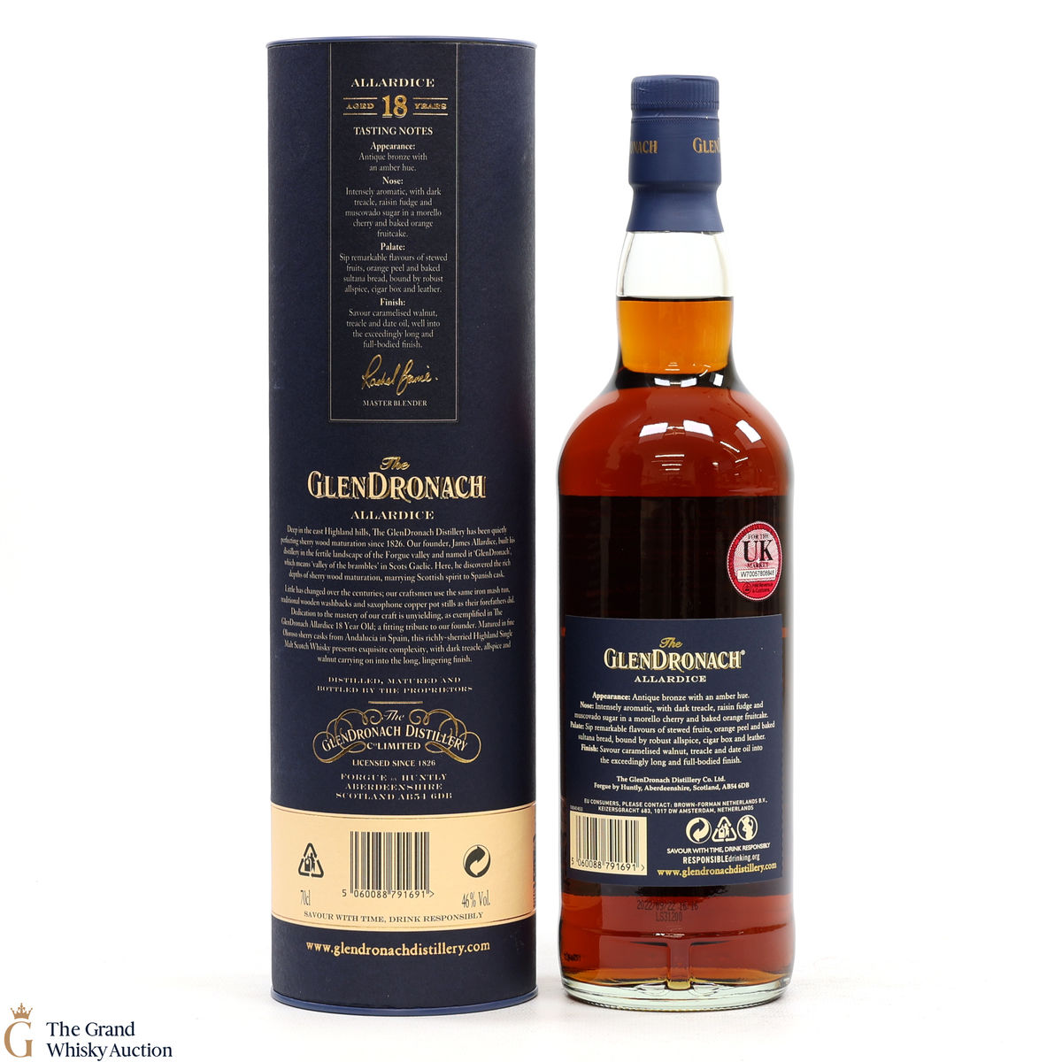 Due to the various ages of bottles and their seals, the condition of liquid is at the buyer's discretion and no claim can be lodged against failure/leakage in transit. Loss and breakage cover is available at 3% of the hammer price as standard. If the lot is not insured, no claim can be lodged against the courier or The Grand Whisky Auction for breakage or loss in transit.