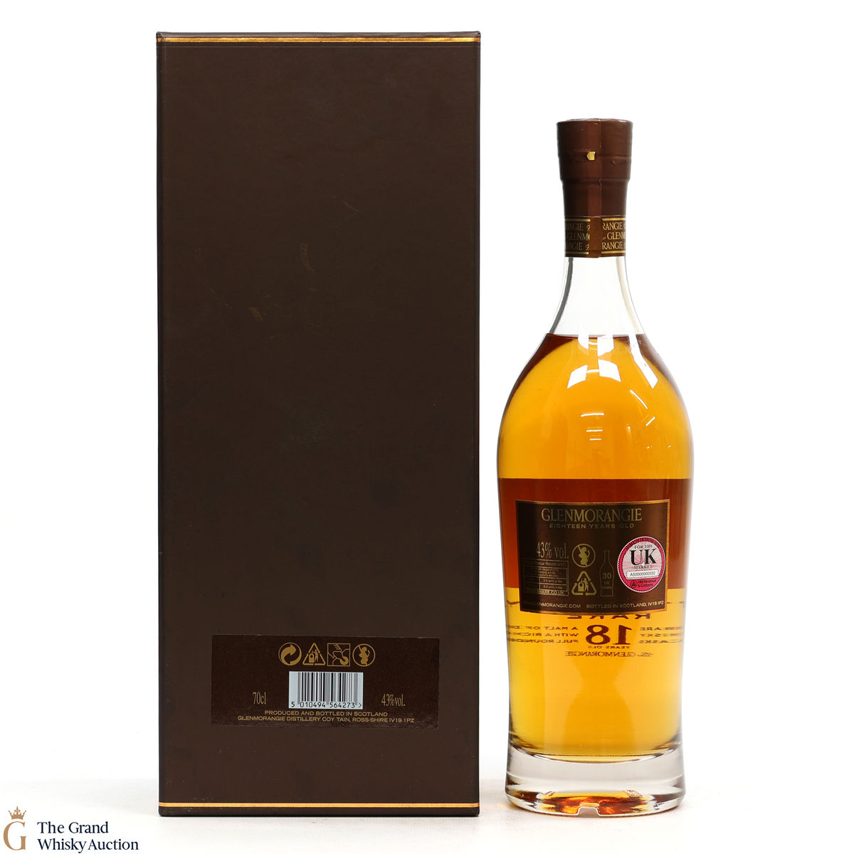 This bottle is an 18-year-old Extremely Rare, Highland single malt produced by Glenmorangie. It has been perfected by the sixteen men of Tain who have specially aged this bottle for 18 years in superior oak casks.