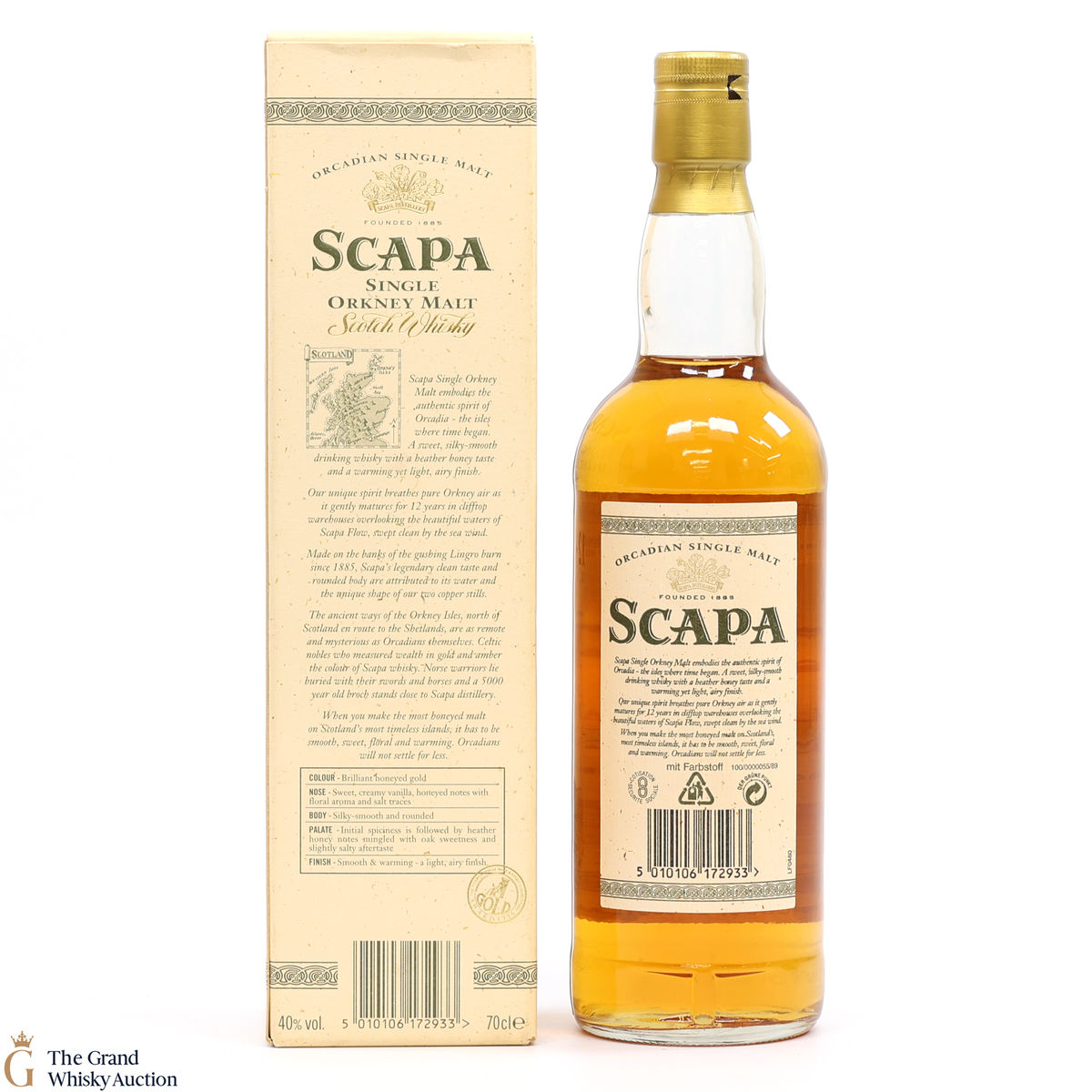 A long discontinued 12 Year Old from the Scapa Distillery in Orkney. It was matured for 12 years in clifftop warehouses overlooking the beautiful waters of the Scapa Flow.
