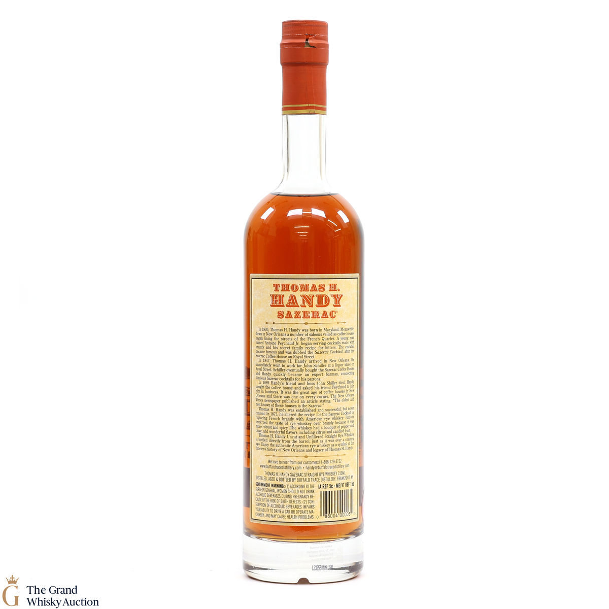 This collection is dubbed the antique collection and celebrates famous figures. The companies founder, Thomas H. Handy, is on the front of this bottle with the picture of the Sazerac Coffee House where everything started.