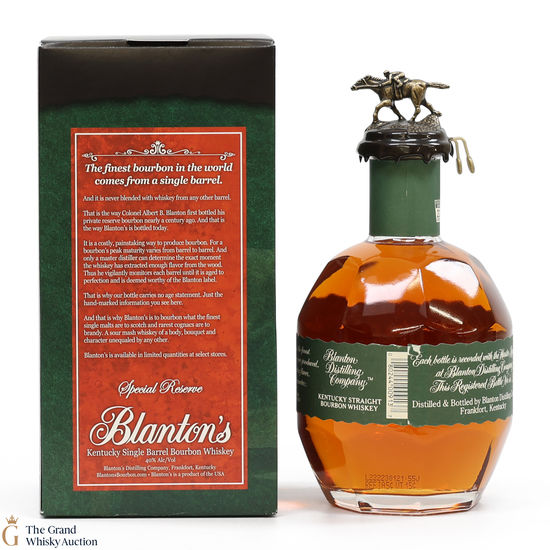 PLEASE NOTE: The wax seal on Blanton's bottles are prone to cracking in transit due to their design. Therefore, as stated in our T&Cs, we do not and will not accept liability should the seal be breached, broken, split or leak in transit. Additionally, please know due to the design of the internal cardboard packaging that surrounds the top of the bottles, it too may be torn. By bidding on this lot you have understood this to be true. Insurance is for complete breakage or loss in transit only.