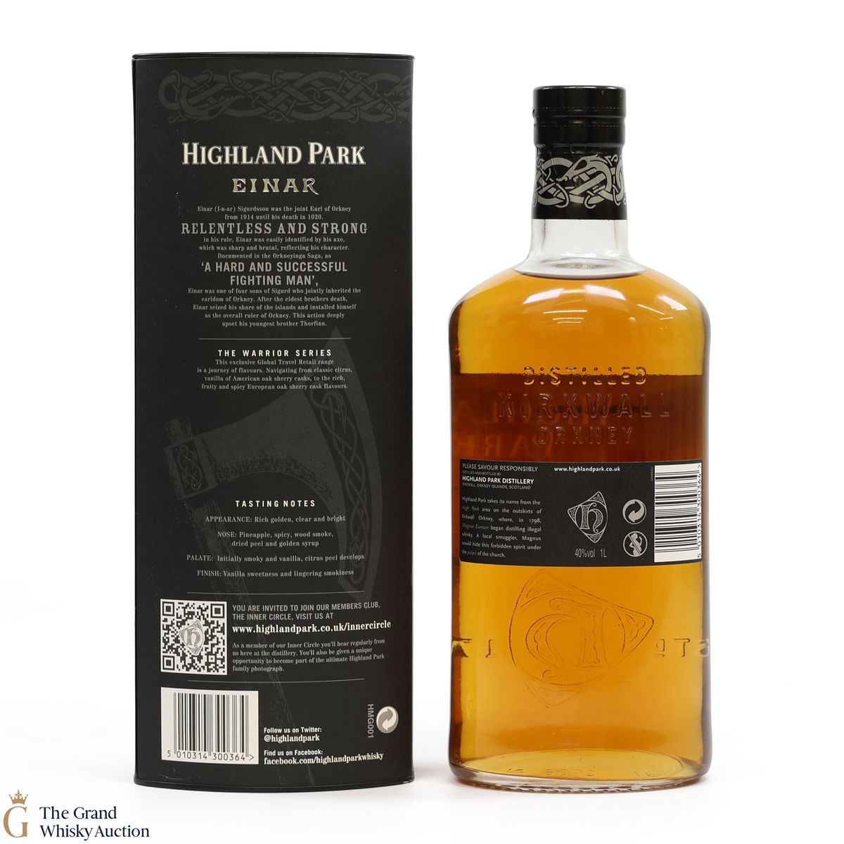 Einar is from Highland Park's travel retail Warrior series. It is named after Einar Sigurdsson who is documented in the Orkneyinga Saga as 'hard and successful man' that once ruled Orkney, where the Highland Park distillery resides. This single malt has been matured in Sherry seasoned American and European oak casks. Warm flavours of zesty dried orange peel and vanilla pods sweetly unfold in each dram of Einar.