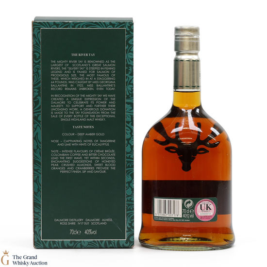 The Tay dram was aged in bourbon and Oloroso sherry casks. When originally released, Dalmore donated £4 from every bottle sold to the Tay Foundation.