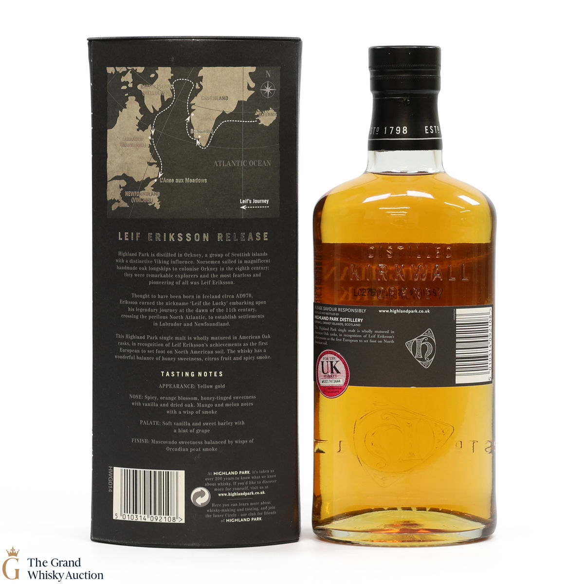 Launched in March 2010, for the travel retail market, Highland Park Leif Eriksson Limited Edition was released to celebrate the first European to reach America over a thousand years ago. The single malt was matured in American oak casks, both ex-bourbon and ex-sherry in recognition of Leif Eriksson, a pioneering Viking explorer, as the first European man to set foot on American soil.
