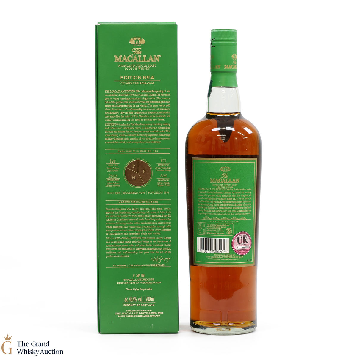 The fourth release in the Edition Series from The Macallan, this Speyside single malt is a celebration of the distillery's whisky making heritage, combining a unique selection of oak cask styles. Edition No.4 reflects the craftsmanship and pioneering design of the new Macallan distillery.