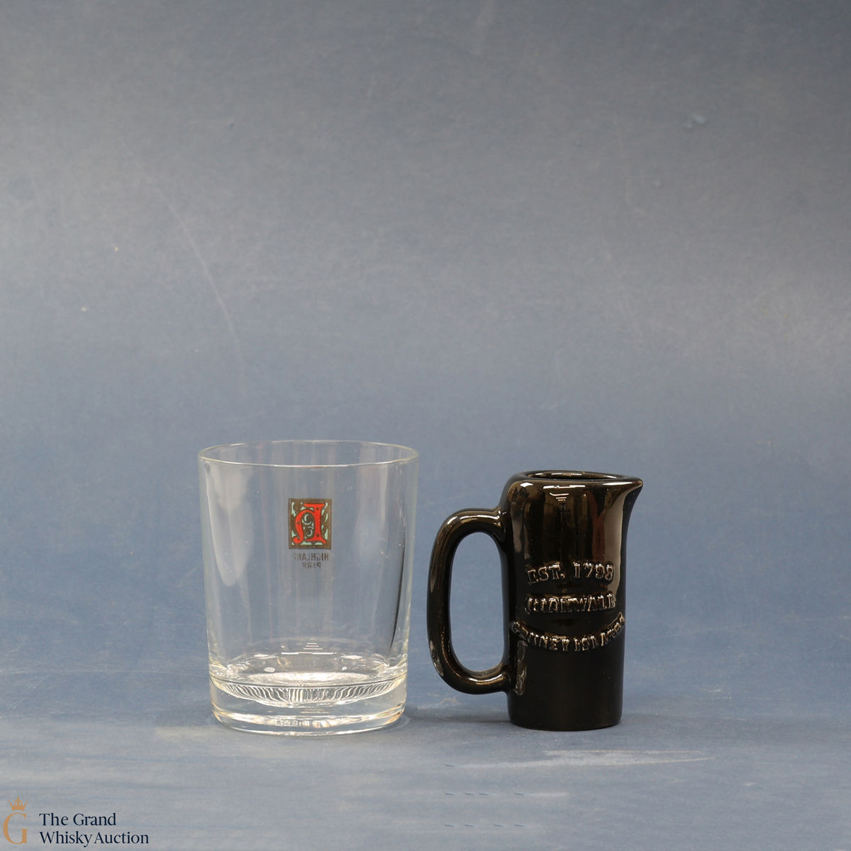 A small branded jug and glass.