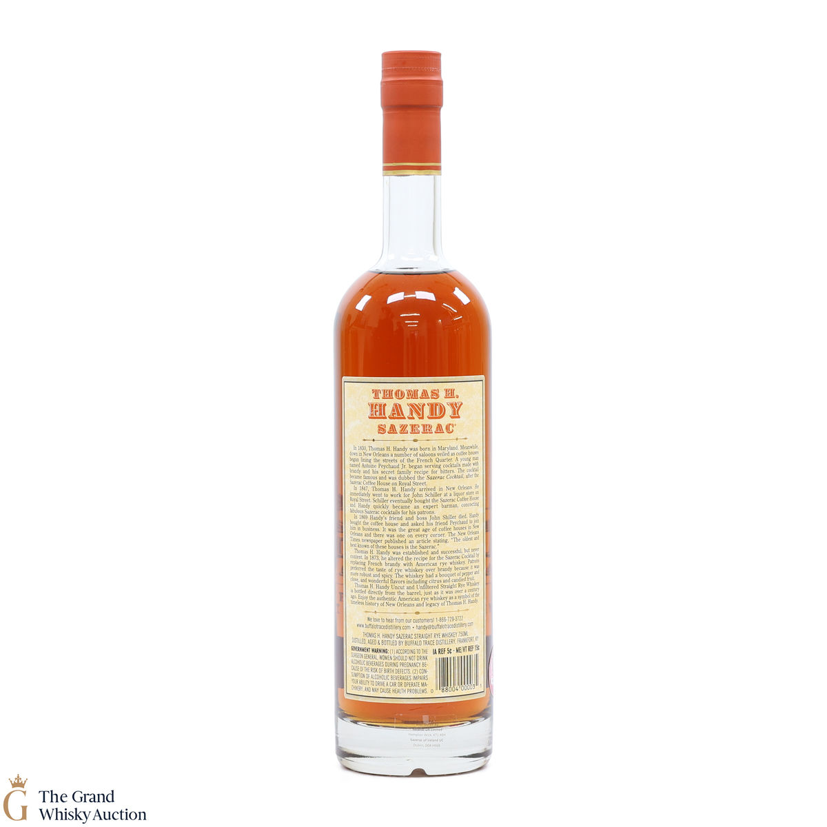 This collection is dubbed the antique collection and celebrates famous figures. The company's founder, Thomas H. Handy, is on the front of this bottle with the picture of the Sazerac Coffee House where everything started.