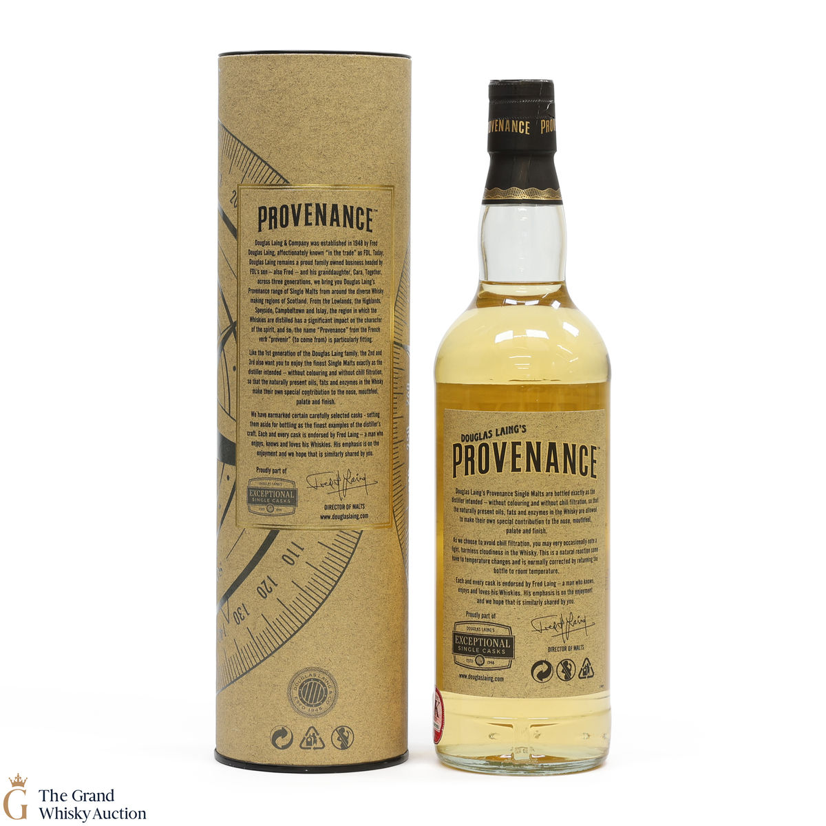 Douglas Laing's Provenance is a special selection from one single cask, exploring whiskies from all across the regions of Scotland. From the Lowlands, the Highlands, Speyside, Campbeltown and Islay.