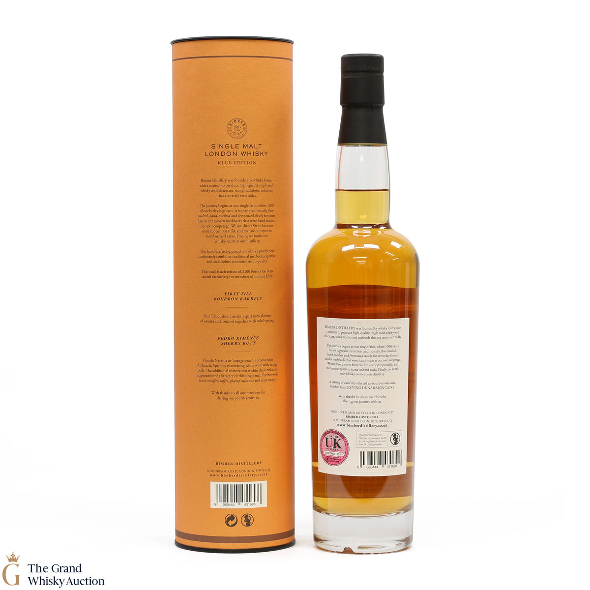 This Bimber release was bottled exclusively for the Bimber Klub as release No.2. The release is composed of spirits initially matured in 1st fill American oak ex-bourbon barrels which were then expertly married and finished in Vino de Naranja casks. A release of 2100 bottles.