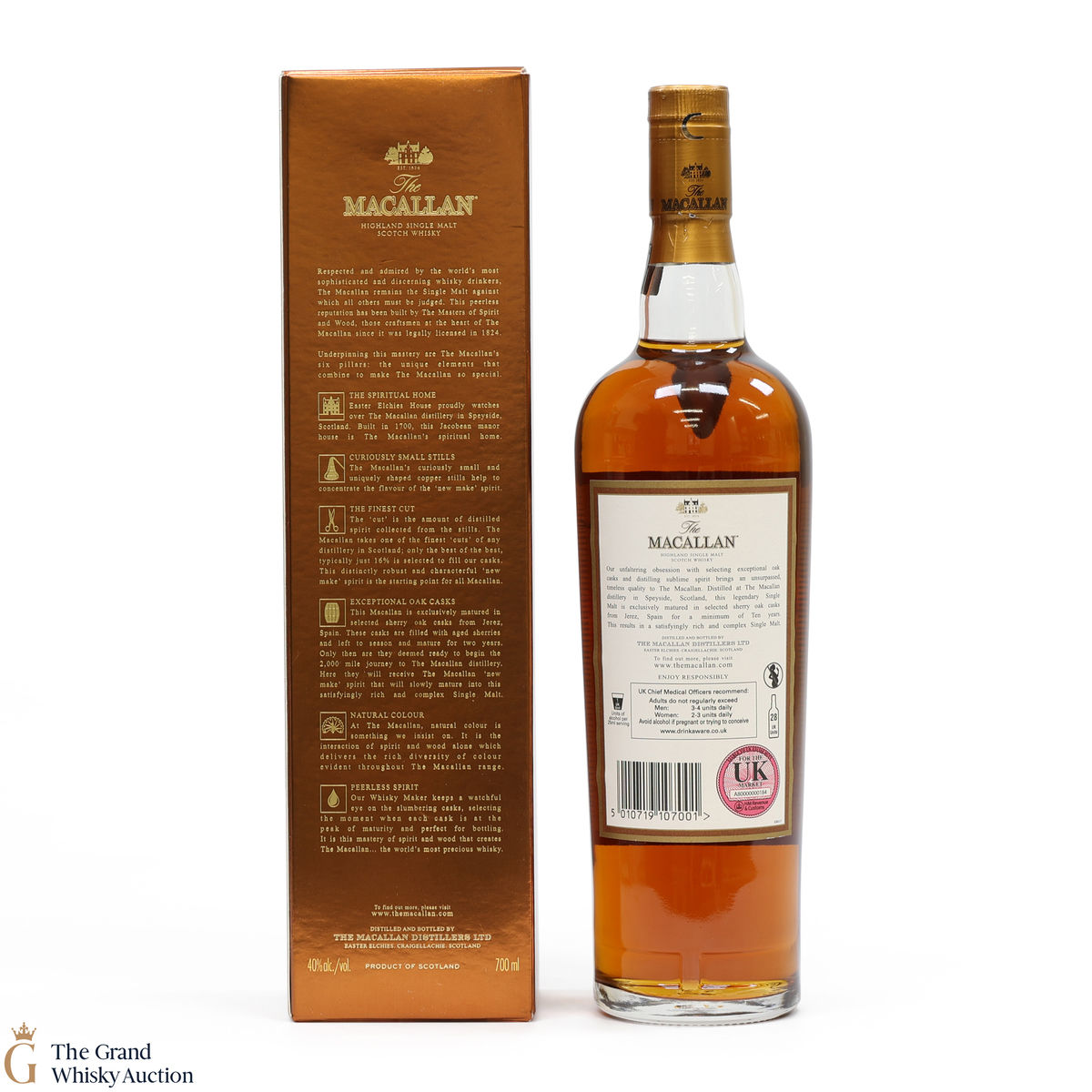 Distilled at the world-renowned Macallan Distillery in Speyside, this single malt was matured exclusively in sherry oak casks from Jerez, Spain. It was aged for a total of 10 years prior to bottling at a strength of 40% ABV.