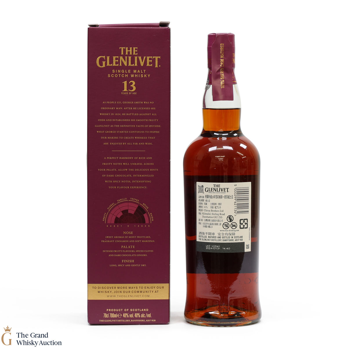 Known as 'The single malt that started it all' for Glenlivet. The Glenlivet 13 Year Old has a soft smooth balance of sweet summer fruits and the floral notes of spring flowers.