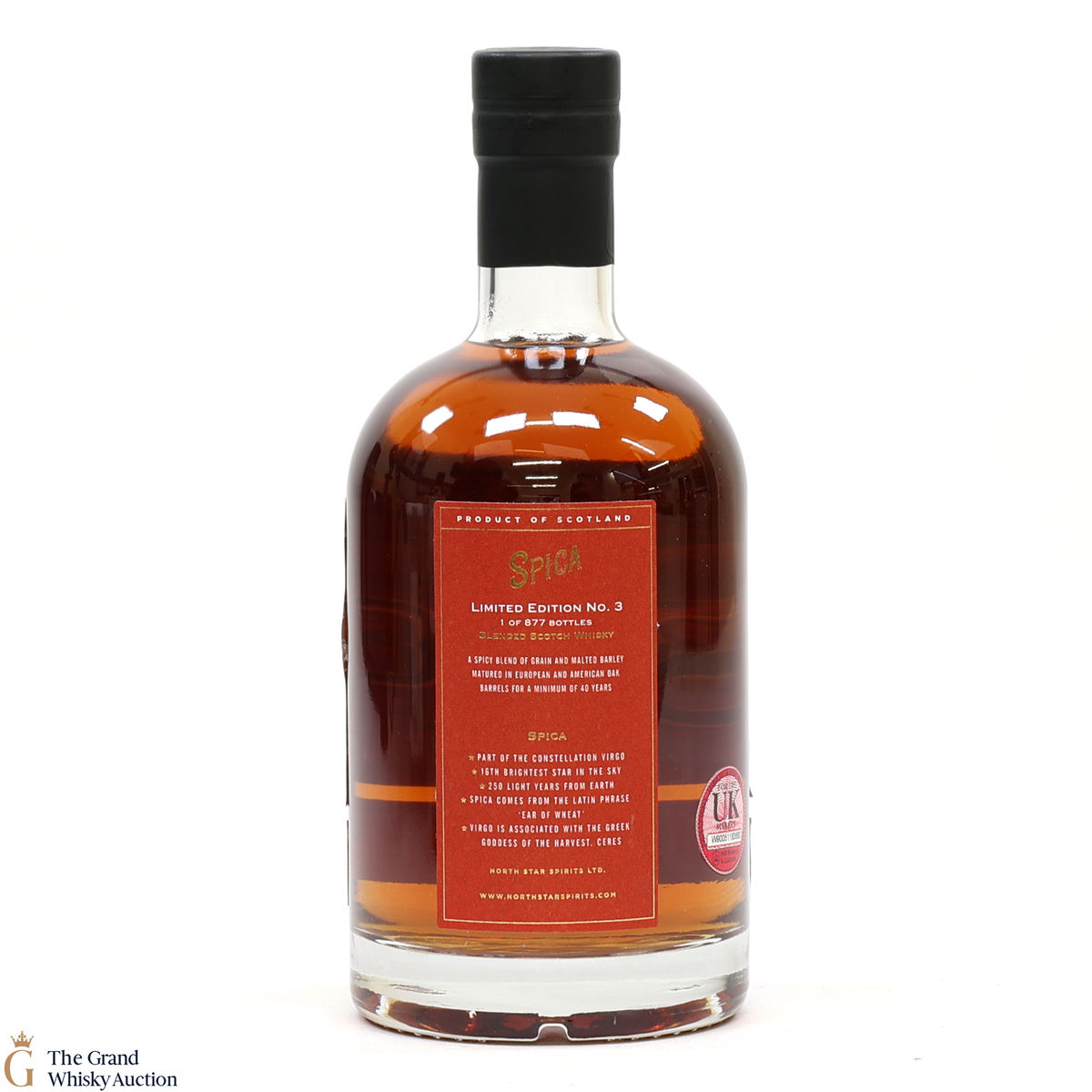 A 40-Year-Old bottling of Spica blended Scotch whisky from indie bottler North Star Spirits, bottled in 2020. This is one of 877 bottles.
