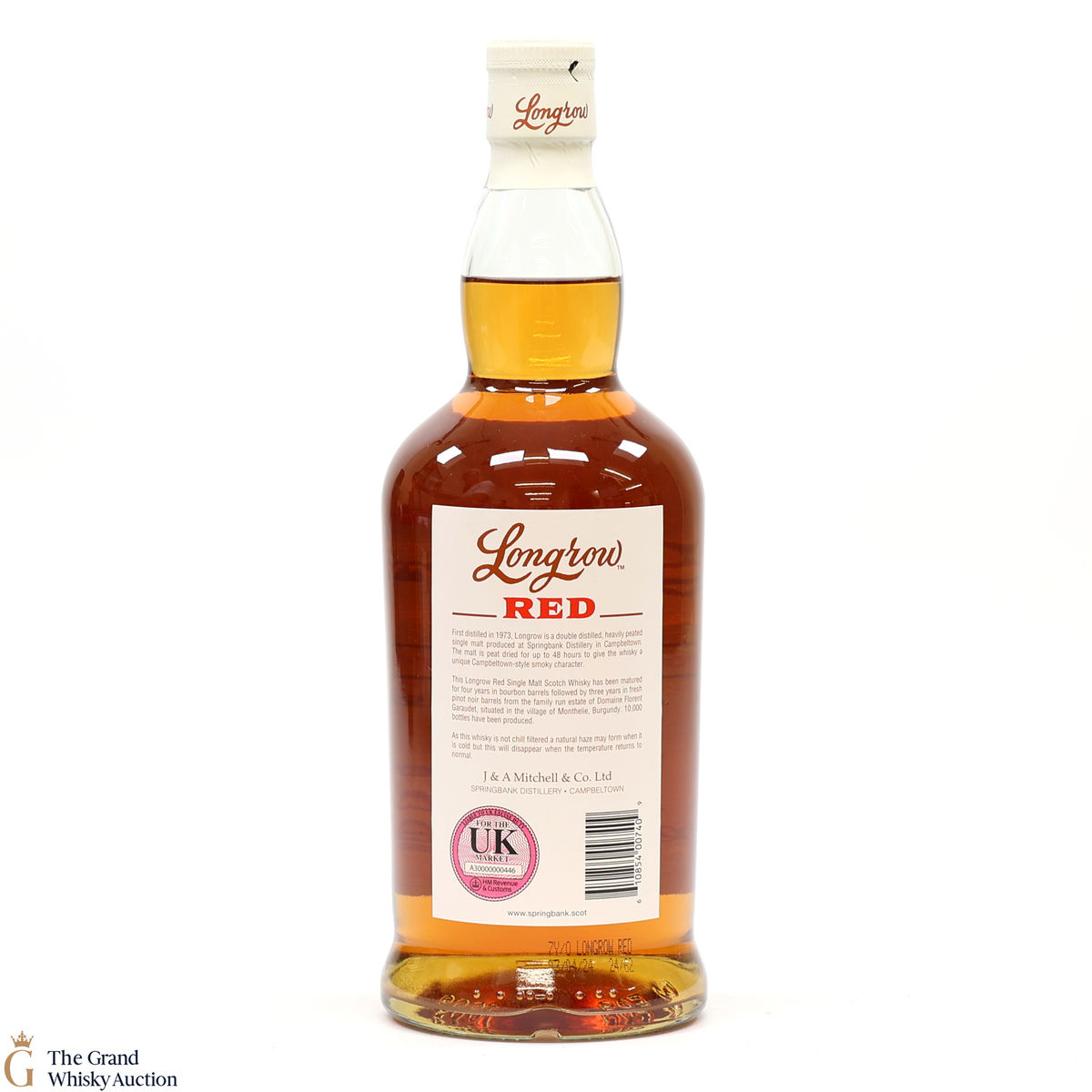 Springbank Longrow Red, is always bottled at cask strength, is released annually in small quantities and every year a different type of red wine cask is used to mature the whisky.
