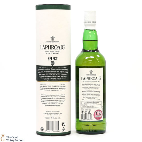 Laphroaig Select has been created using a combination of whisky from a number of different types of cask, including Oloroso Sherry butts, white American oak, Pedro Ximenez seasoned hogsheads, quarter casks and first-fill bourbon casks.