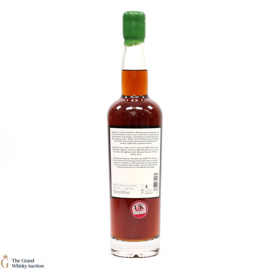 This single malt was distilled from a clear wort in January 2007. It is from a first fill ex-bourbon barrel that spent a couple of months on vacation in a PX cask before returning home to the ex-bourbon barrel with a nice tan before being bottled exclusively for The Whisky Exchange.