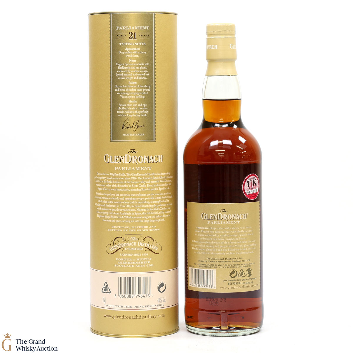Due to the various ages of bottles and their seals, the condition of liquid is at the buyer's discretion and no claim can be lodged against failure/leakage in transit. Loss and breakage cover is available at 3% of the hammer price as standard. If the lot is not insured, no claim can be lodged against the courier or The Grand Whisky Auction for breakage or loss in transit.