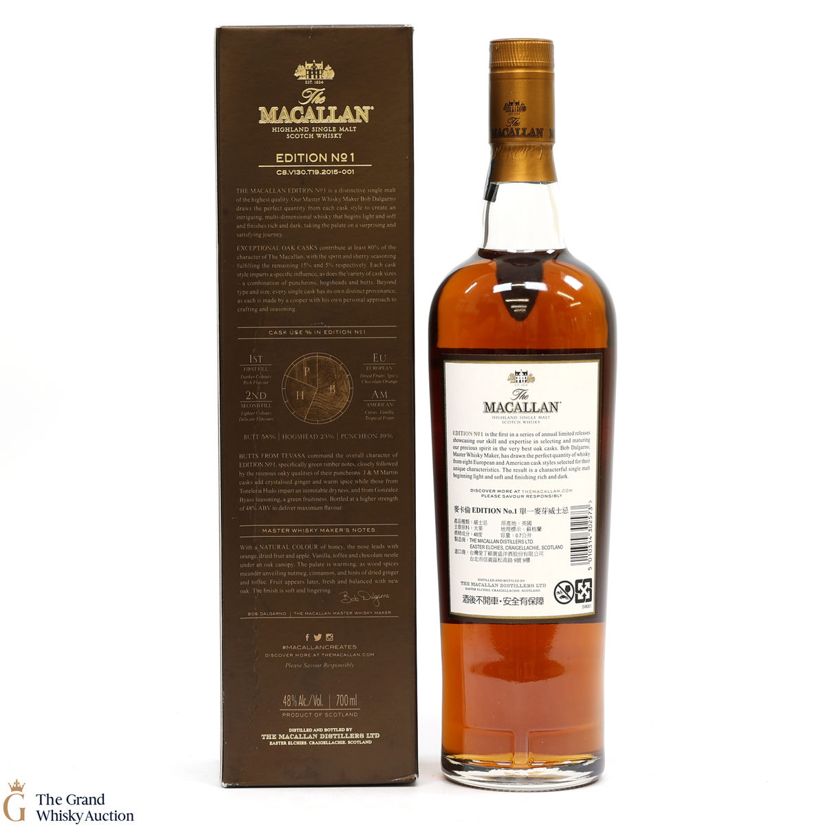The Macallan Edition No.1 is the debut expression in the Edition Series. This is a limited edition drawn from eight European and American oak cask styles selected for their unique characteristics.