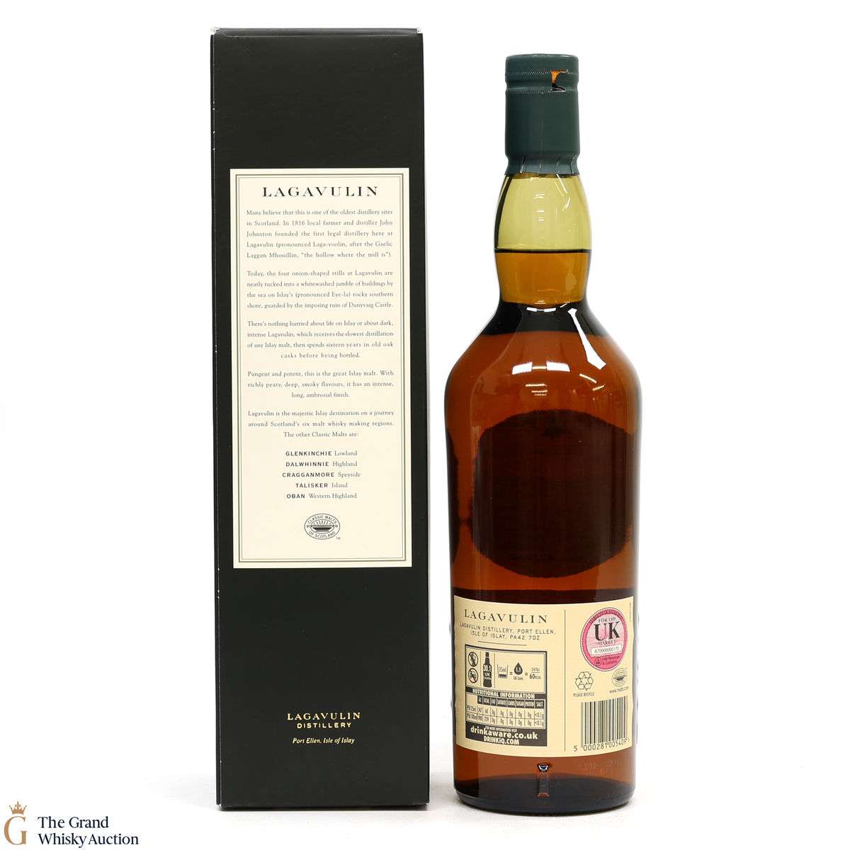 This is a popular and much sought-after single malt with the massive peat-smoke that's typical of southern Islay - but also offering richness and a dryness that turns it into a truly interesting tipple. The 16-year-old, aged in oak casks has truly become a benchmark Islay dram from the Lagavulin distillery.