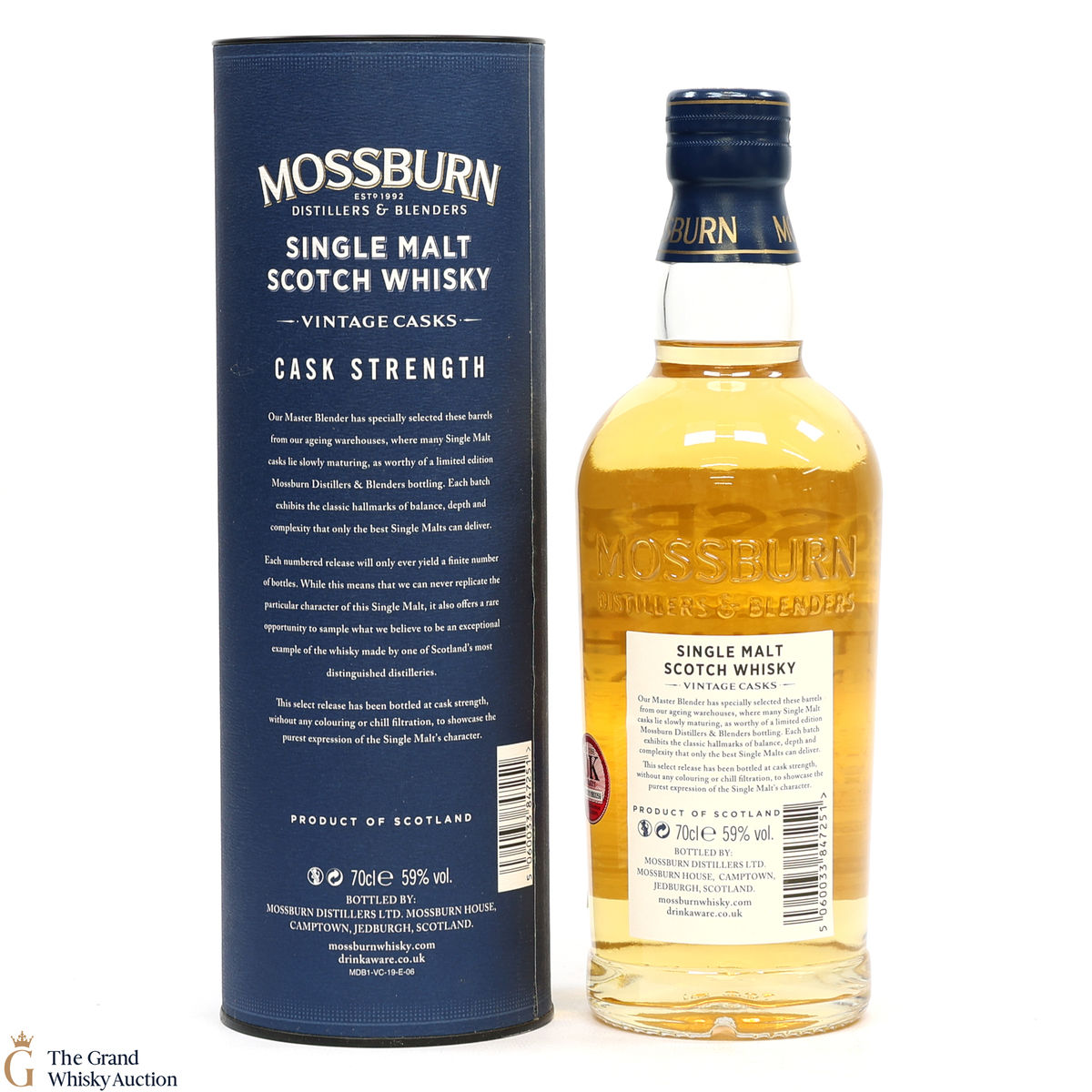 The Mossburn Vintage Casks range is each issued from a strictly limited batch of casks. This Glen Elgin 2008 was bottled at 10 years old in 2018 at cask strength by Mossburn Distillers.