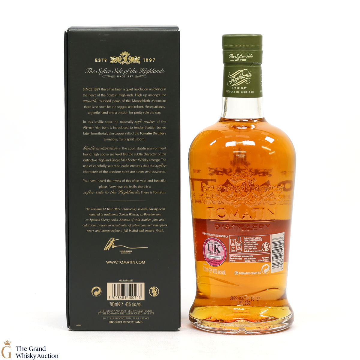 Due to the various ages of bottles and their seals, the condition of liquid is at the buyer's discretion and no claim can be lodged against failure/leakage in transit. Loss and breakage cover is available at 3% of the hammer price as standard. If the lot is not insured, no claim can be lodged against the courier or The Grand Whisky Auction for breakage or loss in transit.