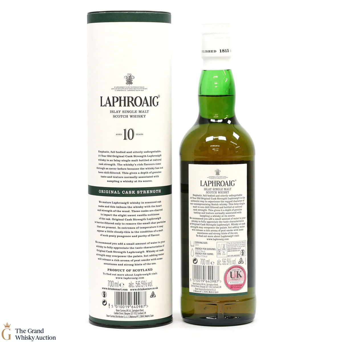 This bottling is from batch 015, the original cask strength bottling of the medicinal 10-year-old from Islay's bestselling distillery, Laphroaig. In making Laphroaig, malted barley is dried over a peat fire. The smoke from this peat, found only on Islay, gives Laphroaig its particularly rich flavour. This release was bottled in December 2021 at 56.5% ABV.