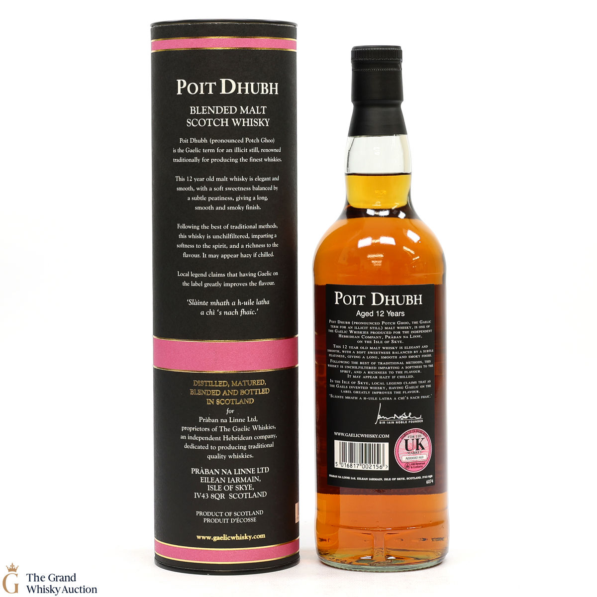 This 12-year-old blended Scotch whisky named Poit Dhubh, meaning 'illicit still' in Gaelic, which was traditionally renowned for producing the best whisky.